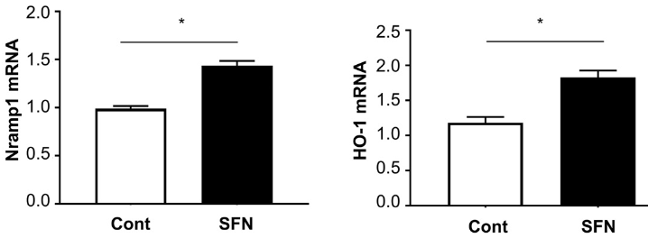 Treatment with sulforaphane (SFN) decreases Mycobacterium growth upregulating the expression of Nramp1 (natural resistance-associated macrophage protein 1, a susceptibility gene for pulmonary nontuberculous mycobacteria disease) and HO-1 (heme oxygenase 1). Mycobacterial counts in the lung, liver, and spleen were reduced after SFN treatment.