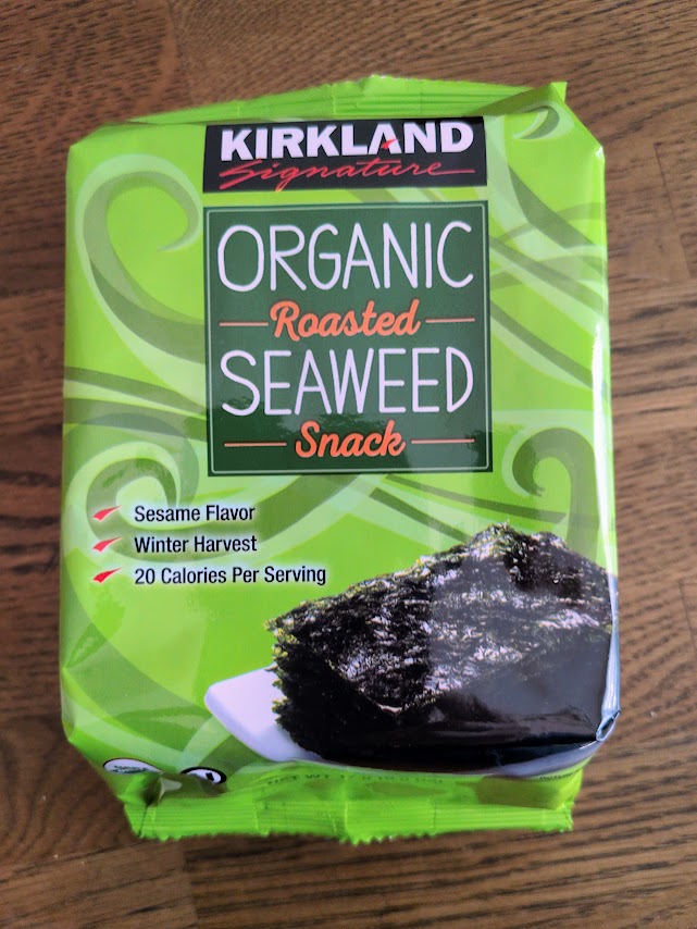 8. I picked up this Korean seaweed in a 10-pack at Costco. The label doesn’t say what its iodine content is. I eat it as a snack whenever I get a salt craving, maybe once a week.