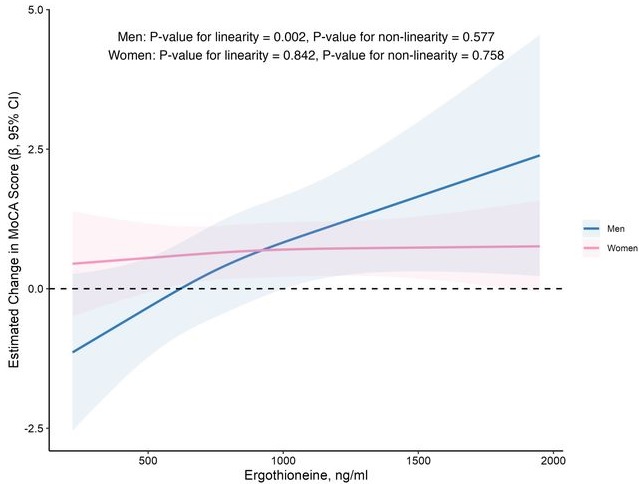 A study investigated associations of plasma ergothioneine levels and cognitive changes in older adults over a two-year period: