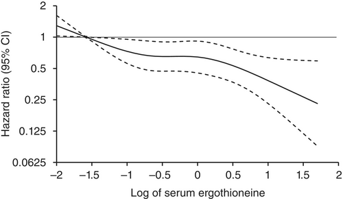 - Since serum ergothioneine levels and other risk factors were measured only at baseline, we could not evaluate the changes of serum ergothioneine levels during the follow-up period. Lifestyle modifications during follow-up could have influenced serum ergothioneine levels and other risk factors. In addition, serum ergothioneine level was measured only once, and from a sample.