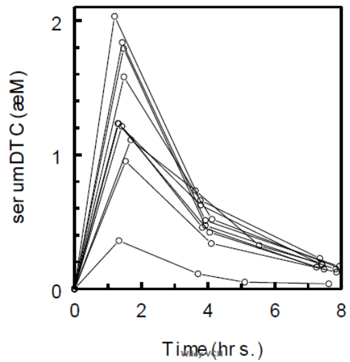 - Does sulforaphane reach the colon? finding that of 11 people ingesting a 102 μmol sulforaphane dose, 1 had no response, and responses of 2 were more than ten times greater than 2 others; and