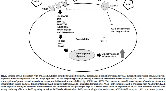 3. “This does not free diet from potentially negatively influencing AGE, but implicates dietary AGE may be less important than other aspects of diet that lead to elevated blood sugar levels and formation of AGEs. [4] [5]”